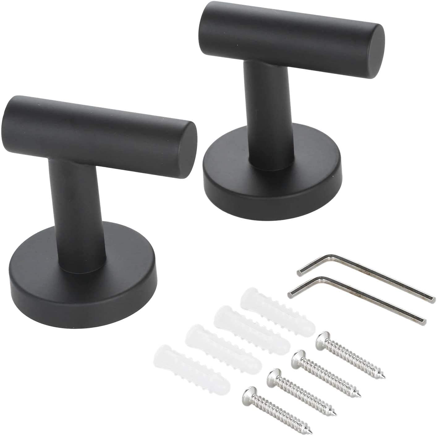 Bowarepro 2個 タオルローブフック 壁掛け収納フック ステンレススチール マットブラック ネジ取り付けタオルハンガー バスルーム トイレット