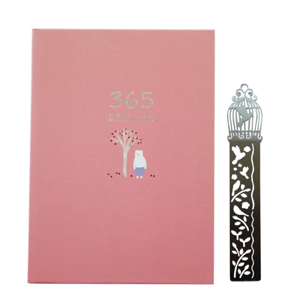 365日 日記帳 かわいい手帳 スケジュール 予定表 仕事 勉強 年間計画月額プラン日次計画 日付なしメモ帳 金属定規/ブックマーク付き (ピンク)