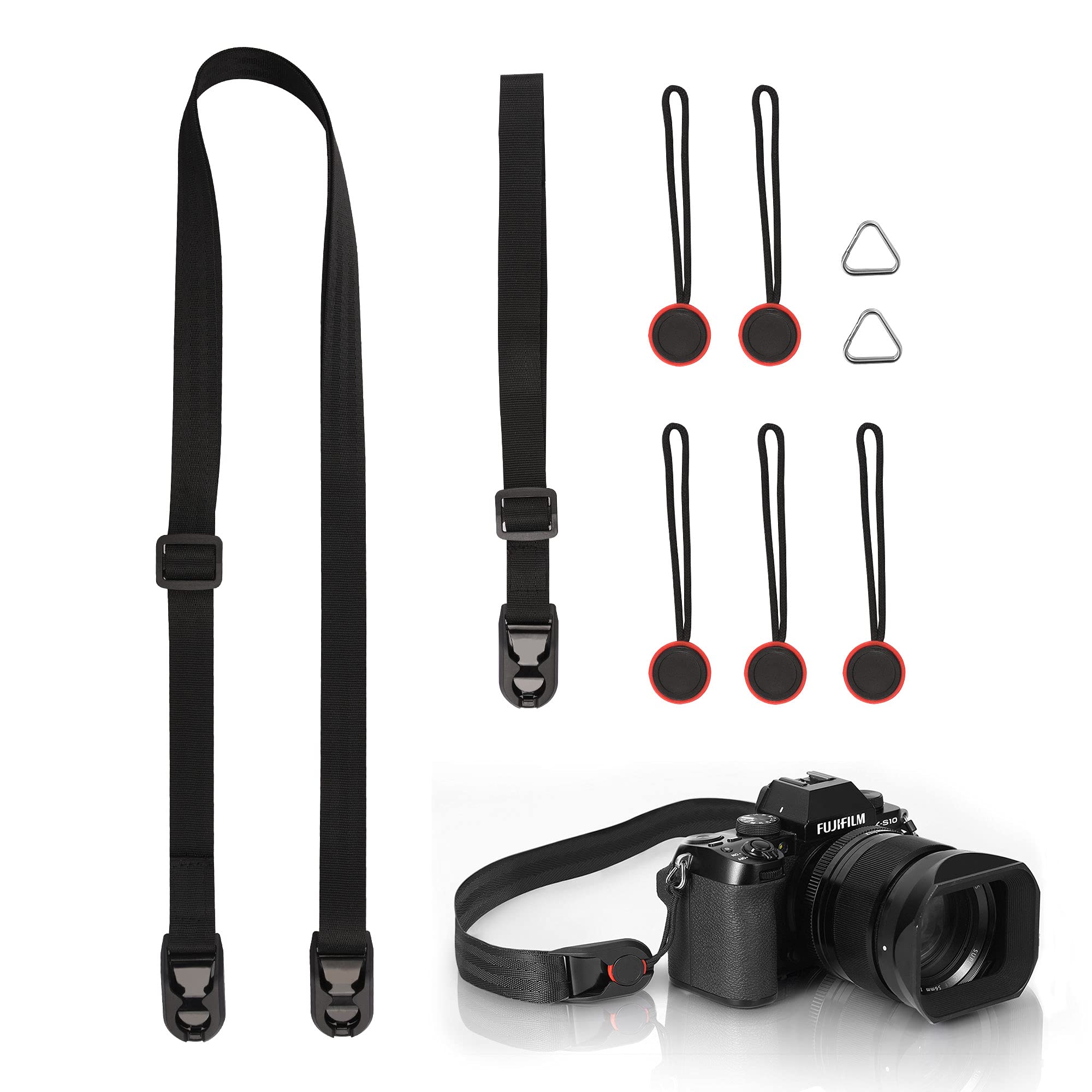 【二つ種類ストラップ】本製品は、ネックストラップとリストストラップの2種類が含め、さまざまなニーズに応じて選択できます。長さを自由に調整でき、高級なデザイン感とブラックの配色は大人気で男女兼用です。