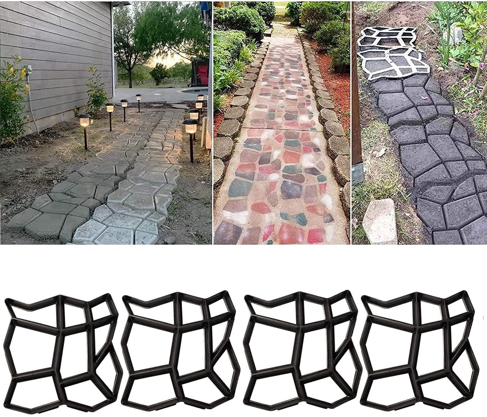 庭の敷石、エントランス、石畳、歩道などを簡単に施工・DIYできる、扱いやすいコンクリート型枠 4個セットです。。