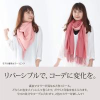 サイズ:約 縦65×横200(cm)フリンジを除いた長さ:約 180cm ※長さは2〜3cm程度の誤差がある場合があります。重量:約 247g ※約3g程度の誤差がある場合があります。表と裏で色が異なるリバーシブルデザイン。巻き方によって色の見せ方を変えることができるので、その日の気分やコーディネートに合わせて自由にアレンジができます。柄がない無地のストールなので、カジュアルにもオフィスファッションにも合わせやすいデザインです。男性も気軽に使いやすいカラーを取り揃えておりますので、男女兼用でご使用いただけます。マフラーのように首に巻くのはもちろん、ショールのように羽織っていただくこともできます。春・秋・冬に寒さ対策やファッションのアクセントとしてご使用いただくだけでなく、夏場の冷房対策にも活躍します。