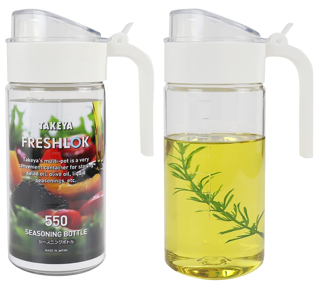 【タケヤ公式】Freshlok フレッシュロック シーズニングボトル 2本セット ホワイト 500ml 液漏れしない 調味料入れ オイルボトル 詰め替