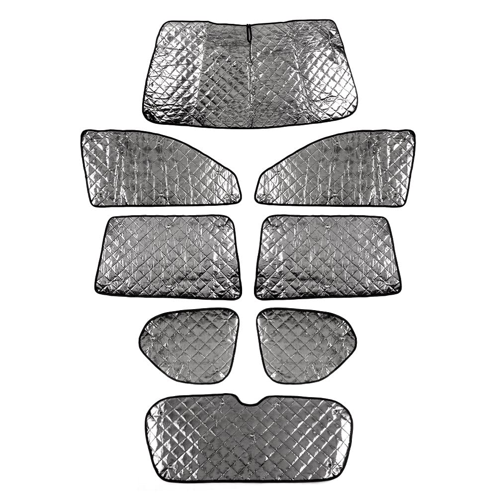 2.【セット内容】:フロントガラス用x1枚、フロントドアガラス用x2枚、リアガラス用x2枚、三列目ガラス用×2枚、リアハッチガラス用x1枚【合計8PCS】(収納袋1枚 )。