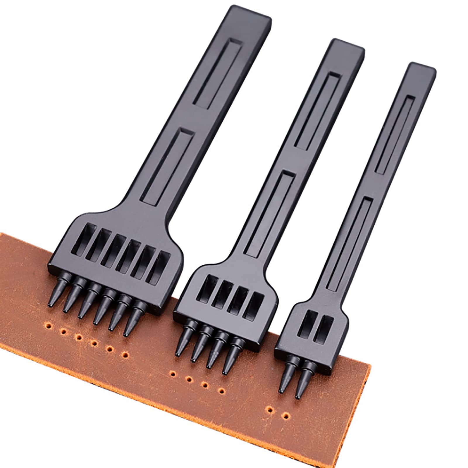 GOOMAND レザークラフト レザーパンチ 菱目打ち 6mmピッチ 丸穴 ポンチセット丸目打ち 革細工 レザークラフト ツール 2・4・6歯 3 本