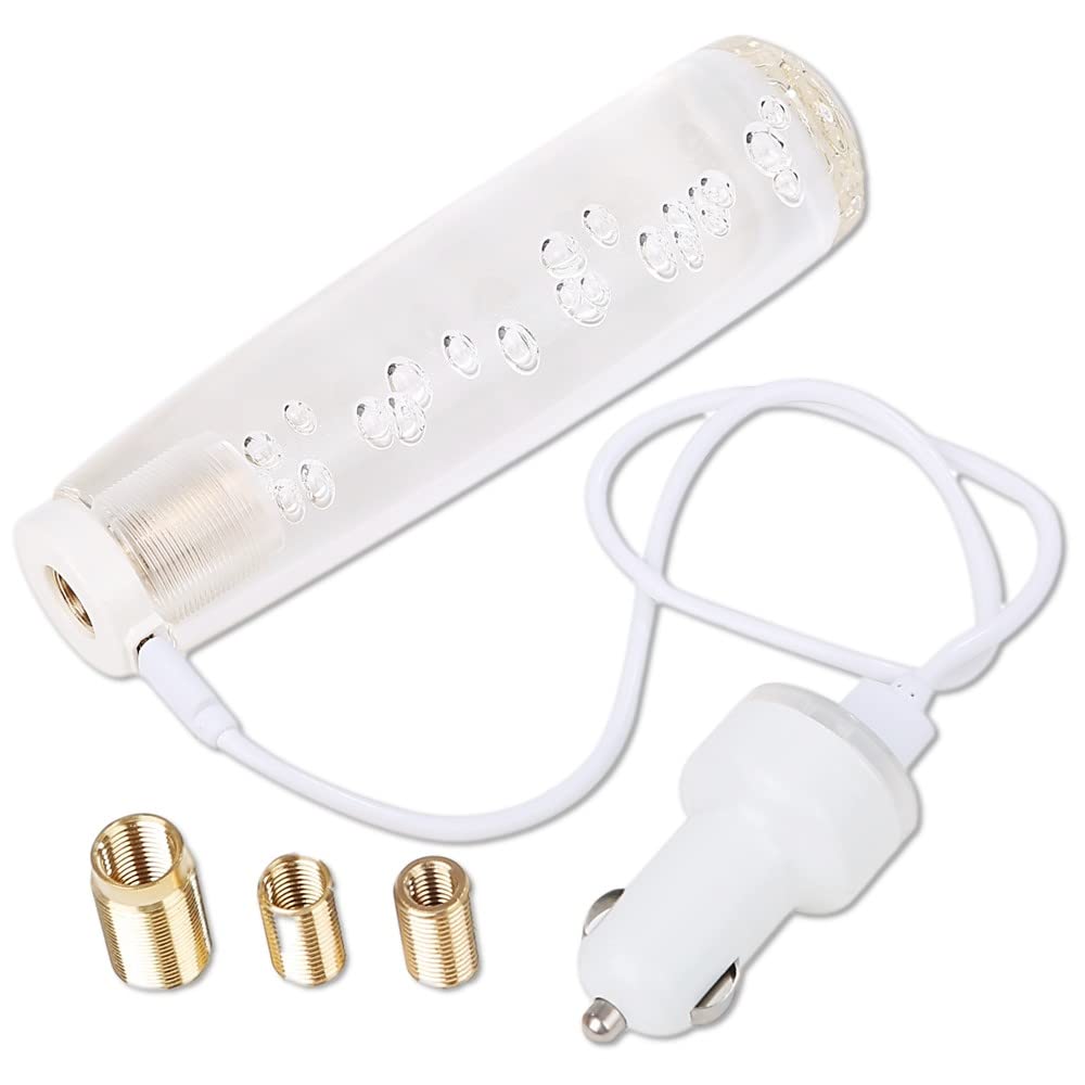 【光る クリスタル シフトノブ カラフル ユニバーサル バブルギアスティック 汎用 クリスタルシフトノブ】<br><br>・気泡と光のグラデーションが美しい、LEDクリスタルシフトノブ。七色の光が気泡に反射し、車内の雰囲気を一変させます。<br>・本体に付属のケーブルをつなぎ、シガーソケットから給電します。LEDライトが光り、幻想的な空間をつくります。<br>・ノブは回して締めるだけの簡単取付です。イモネジで締