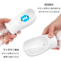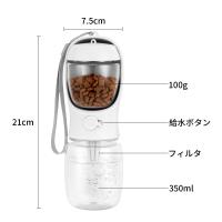 【ワンタッチ給水】ボタンを押すだけで、簡単に給水できます。それに飲み残す水はボタンを押すと簡単にボトルに戻ることができます。どこでも片手で水をあげられ、使い勝手がよい! 【水漏れ防止】シリカゲルのシールリングを内蔵し、外出する時、カバンの中に入れても水漏れの心配がありません。 【ウォーターボトル+フードボックス設計】350ml ウォーターボトル+100gフードボックス。普通の犬ウォーターボトルと比べて、ペットの餌やおやつが入れる。給水や給餌の需要を同時に満足できます。 【飲みやすい】広い飲み口あらゆる犬種の口の形に対応して、飲みやすいです。コップボディは透明PCで作って、注ぎ口が広い、水がなくなる時に水の補充することが便利になります。 【高品質素材】携帯用水飲みボトルは食品認証のABS素材で作って、安全無毒、環境にやさしい。