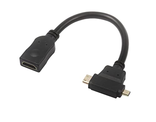 【 ご注意点 】本製品は両L字型 ( Mini-HDMI(C Type) オス +MicroHDMI オス to HDMI メス 両90度変換、T型 アダプター ケーブルです。購入前に、お使いの機器はMini-HDMI ポート、または MicroHDMI が付いていることをご確認ください。