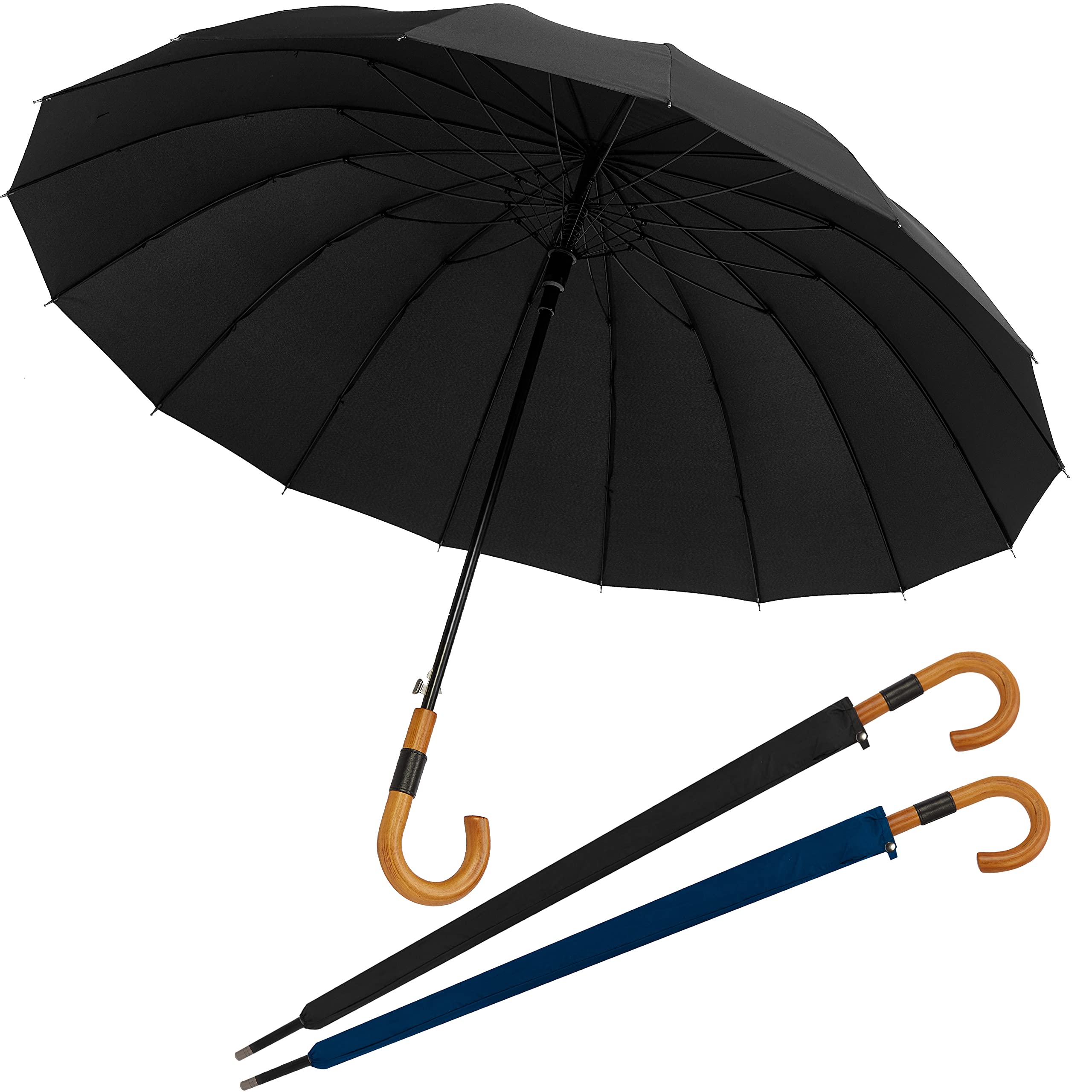 商品名:Aiyoupin メンズ 傘 16本骨 紳士傘 ジャンプ傘 大きいメンズ 長傘 ワンタッチ傘 丈夫 テフロン加工 撥水 耐風 梅雨対策 大きいレデイーズ長傘 大きいな16骨長傘収納ポーチ付き 紳士長傘 (16本骨, 黒い)
