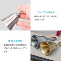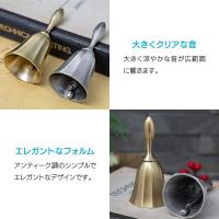 大きくクリアな音の金属製のハンドベルです。 アンティーク調のシンプルでエレガントなフォルム。レストランやホテルのコールベルとしてはもちろん、家庭での呼び鈴、イベントなど様々なシーンでお使いいただけます。 亜鉛合金素材のため、耐久性があり褪色・変形・錆びを防ぎ長くお使いいただけます。 【仕様】サイズ:直径4.8cm×高さ10cm / 重量:約100g / 素材:亜鉛合金 / カ