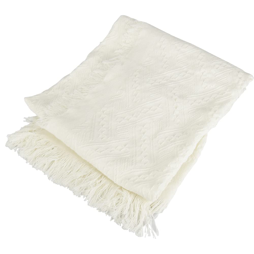 ピクニックシート 145×85cm 2?3人用 厚手 北欧風 インスタ映え 公園 遠足 キャンプ フリンジ 絨毯 (ホワイト)