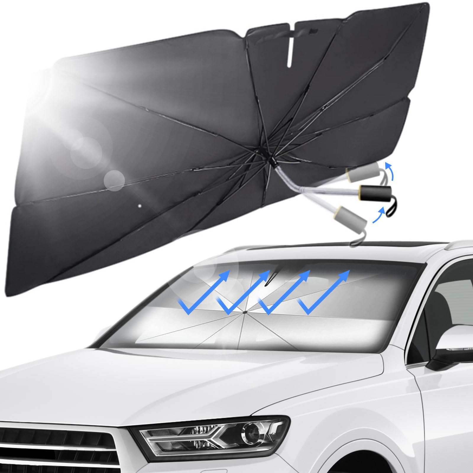 DEWEL サンシェード 車 フロント 傘型【360°中棒回転・強化10本骨】車サンシェード UVカット 遮光遮熱 軽自動車/普通車対応 折りたたみ式