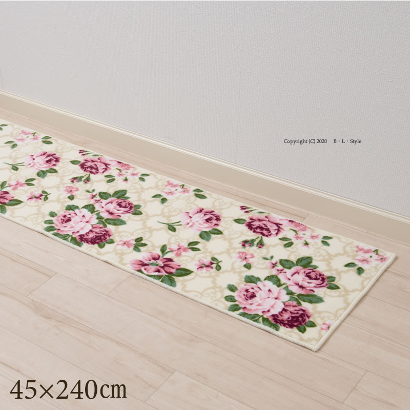 キッチンマット 240cm 台所マット おしゃれ 洗える キッチン マット 花柄 滑り止め マリア 約45×240cm センコー
