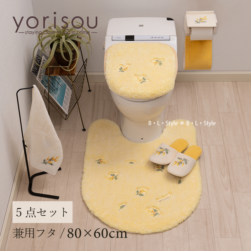 トイレマットセット 5点 ロングトイレマット+兼用フタカバー+スリッパ+ペーパーホルダーカバーN+ハンドタオル SDS yorisou スイートミモザ イエロー センコー