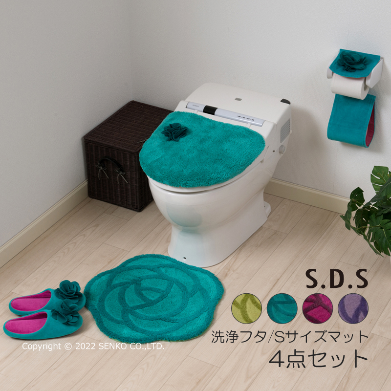 トイレマットセット 4点 約48×50cm トイレマット+洗浄便座用フタカバーN+スリッパ+ペーパーホルダーカバーN SDS ローズ センコー