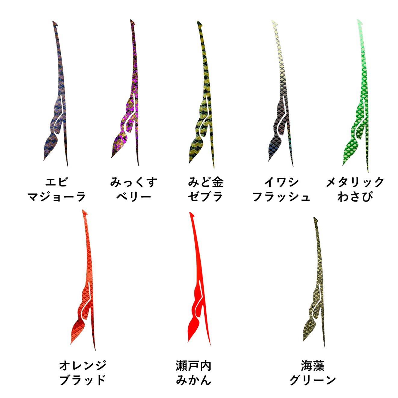 | 鯛ラバ ビースト BEE STRAIGHT ストレート シリコンネクタイ blue abyss 船釣り オフショア オリジナル Youtube タイラバ 釣り アウトドア フィッシング 釣れ過ぎ 真鯛 シリコン ラバー 83siki 83式 82丸 【ビーストBEE STRAIGHT】 2つに分かれたストレートネクタイが異なる動きで真鯛を誘い込む! 太いネクタイ側はストップ&GO トルネードの動きで! 潮の流れや巻き速度によって異なる動きを実現! 細いネクタイ側はプルプルと細かい振動と 時に暴れる動きを織りなす! 今までにない動きのストレートネクタイが真鯛を惑わし 口を使わせ鯛ラバの常識を覆す! 【BLUE ABYSS オリジナル】 Youtube はに丸チャンネルの はに丸船長が考案した鯛ラバ ビースト BEE STRAIGHT♪をBLUE ABYSSがアレンジ製作! ●カラー ・イワシフラッシュ ・エビマジョーラ ・みっくすベリー ・みど金ゼブラ ・メタリックわさび ・オレンジブラッド ・瀬戸内みかん ・海藻グリーン 【カラー詳細】 ★イワシフラッシュ★ 黒色ベースのくっきりとしたシルエットに シルバーホログラムが強烈にアピール!! 捕食魚達が年中夢中になるホログラム最強カラー! ★エビマジョーラ★ パープルラメ効果により真鯛を魅了 海底の海藻を捕食している時に 一つテンヤでエビを捕食し始めた時に効く大鯛捕食カラー! ★みっくすベリー★ 海底で獲物を捕食している時などに有効なナチュラル系 水温が下がった冬場や 水温が上がりきって動きの鈍った夏場のベタ底の真鯛を誘い出す! 5月から2月頃の真鯛を誘い出すカラー! ★みど金ゼブラ★ 朝マズメ 日中 晴れ 曇りと 浅場から深場まであらゆる状況で使えるマルチカラー! オレンジグリーンベースではあるものの 水中でキラキラ光る 緑色のラメの効果によって高アピール! ベイトの種類を問わない大人気カラー! ★メタリックわさび★ グリーンベースで鮮やかな緑ラメが 明るい日中や暗い海底でも踊り狂う 浅場から深場まで あらゆる状況で使える強アピールカラー! ベイトが小魚だけではなくイソメや海苔などにも効くカラー! ★オレンジブラッド★ オールラウンダーカラー! 朝マズメ 日中 晴れ 曇りと朝場から深場まで あらゆる状況で使える 強アピールカラー ベイトがエビ カニ 小魚 あらゆる状況に有効! ★瀬戸内みかん★ 朝マズメ 日中 晴れ 曇りと朝場から深場まで あらゆる状況で使えるカラー 蛍光色の効果によって高アピール ★海藻グリーン★ 海藻や虫 底物を捕食している時などに有効なナチュラル系 水温が下がった冬場 水温が上がりきって動きの鈍った 底ベタの鯛に有効! 5月〜12月頃の真鯛を誘い出す 海藻色カラー! 【注意事項】 取扱説明書マニュアルは付属しません 過度な負荷をかけると破損や破れの恐れがあります 気温、水温、天候などで効果は異なります 直射日光の当たる場所での保管は避けて下さい 意匠権、出願!複製・複写することを禁じています モニターの環境により実際の商品と色の見え方 素材感が変わる場合があります 製造時期により外観デザイン及び仕様・サイズは予告なく変更することがあります 簡易包装での送付となり包装に折れやシワが入っている場合がございますご理解お願いいたします セット内容: 同色3本入り(針は付属しません) カラー:全8色 イワシフラッシュ エビマジョーラ みっくすベリー みど金ゼブラ メタリックわさび オレンジブラッド 瀬戸内みかん 海藻グリーン サイズ: 縦約14.2cm、横約3.4cm (多少の誤差が生じる場合があります) 素材:シリコン製品 生産国:日本 |