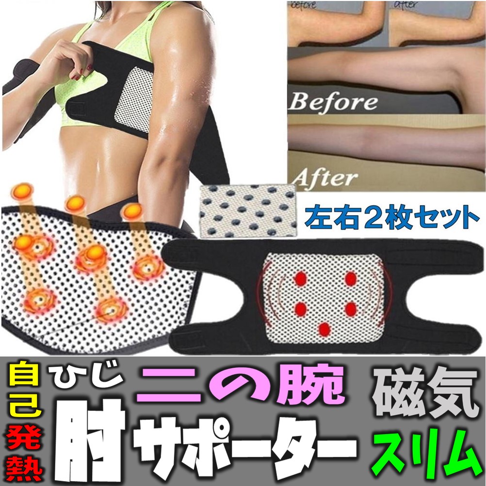 マグネット 肘サポーター 自己発熱 二の腕 ダイエット 2枚組 左右セット 磁気 アーム肘 トルマリン 痩身 減量 疼痛 緩和 包帯 腕 ケア 腱炎関節炎 ジョギング アームバンド スポーツ バレーボール 肘パッド