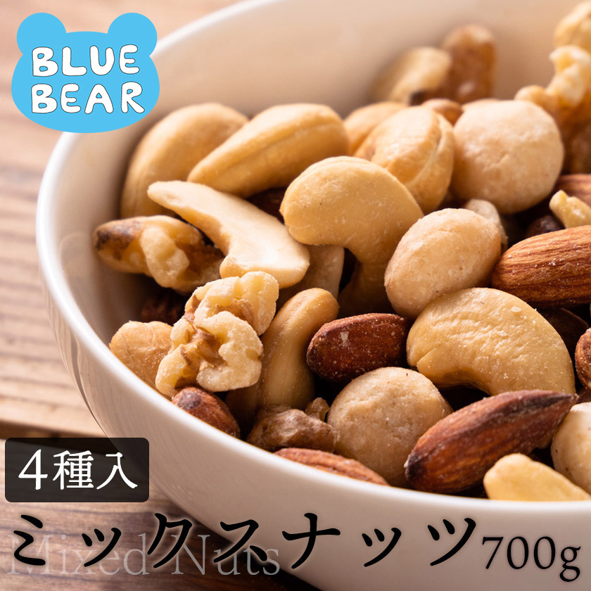 ミックスナッツ 700g 素焼き 無塩 4種類 アーモンド カシューナッツ クルミ マカダミアナッツ 食塩不使用 ナッツ