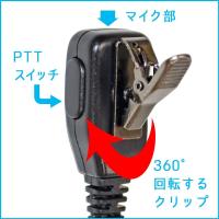 ![]() | PTTスイッチとマイクは一体型となっているため、本体を持たなくても、イヤホンマイクのPTTスイッチを押すだけで交信可能です。 | |
