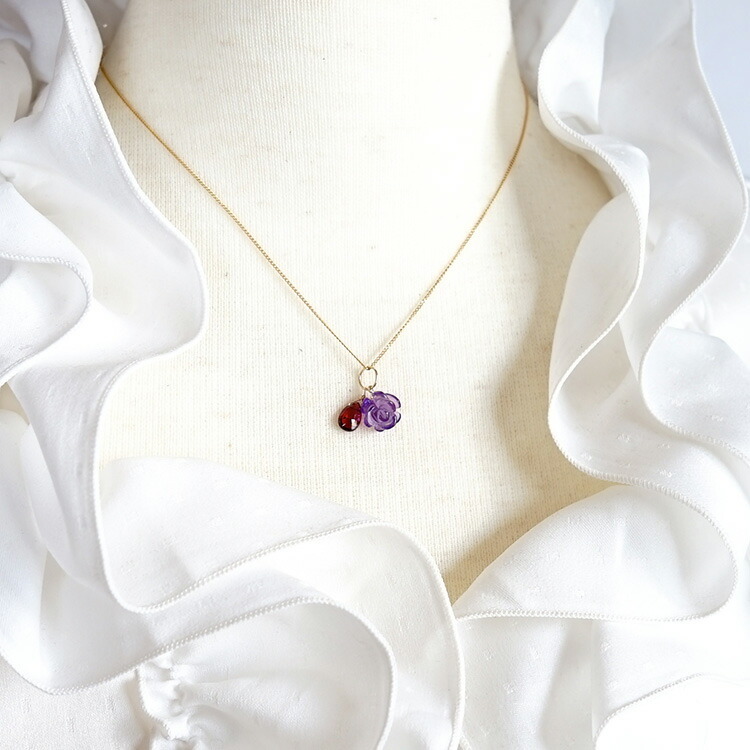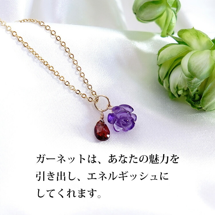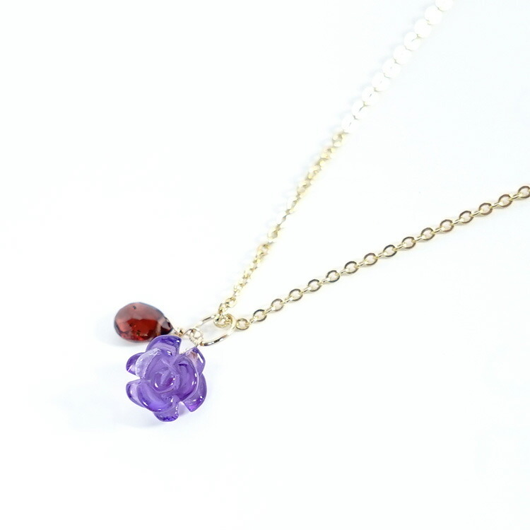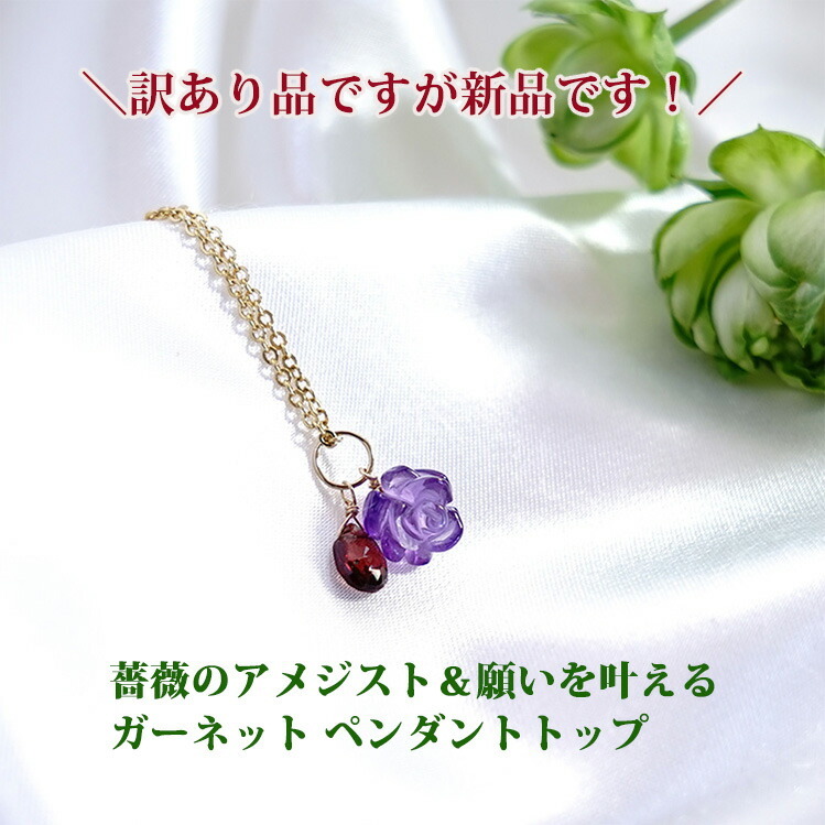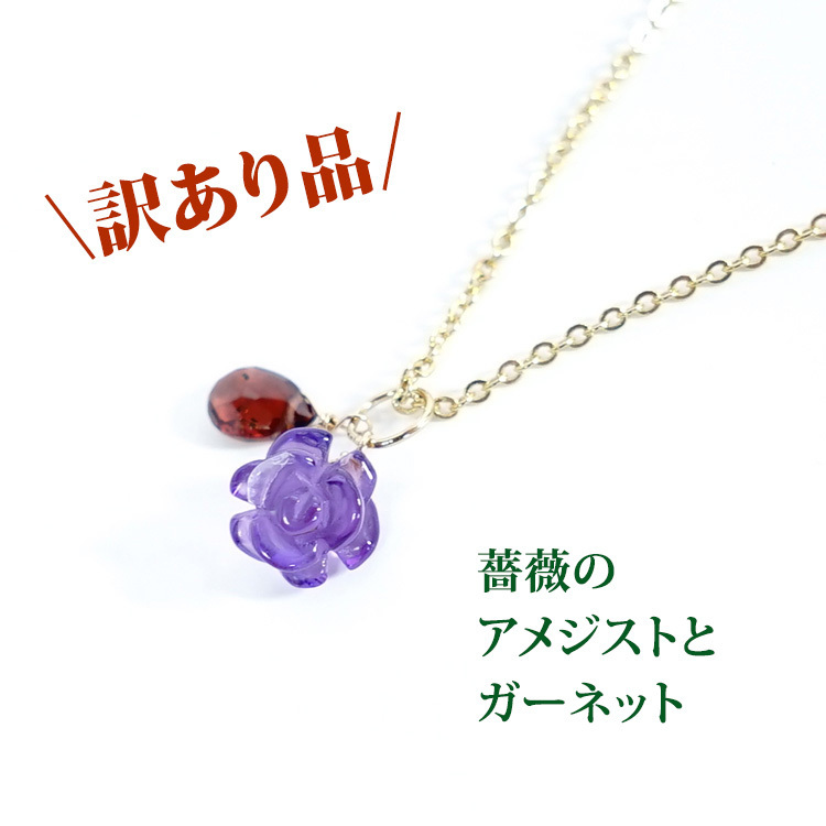 訳あり お買い得 天然石 アメジスト 薔薇 ガーネット ペンダント 14KGF ツイン トップ チャーム レディース パワーストーン プレゼント セール 花