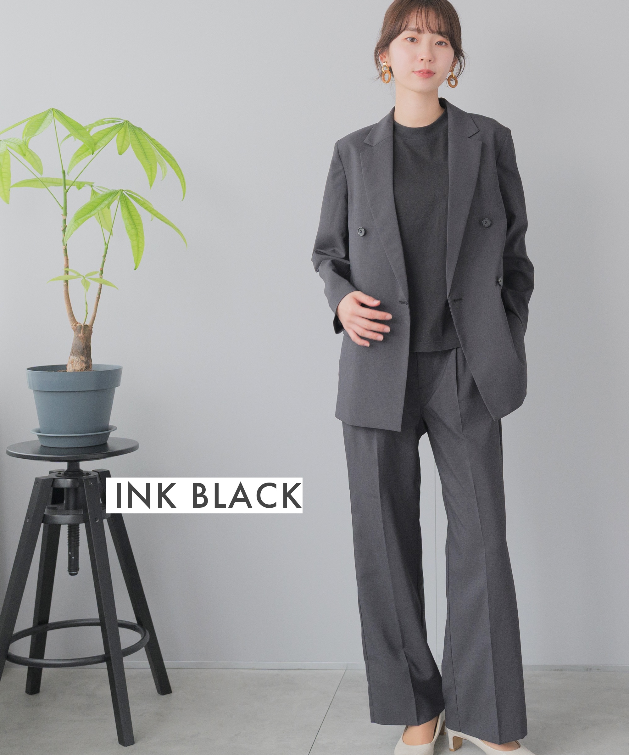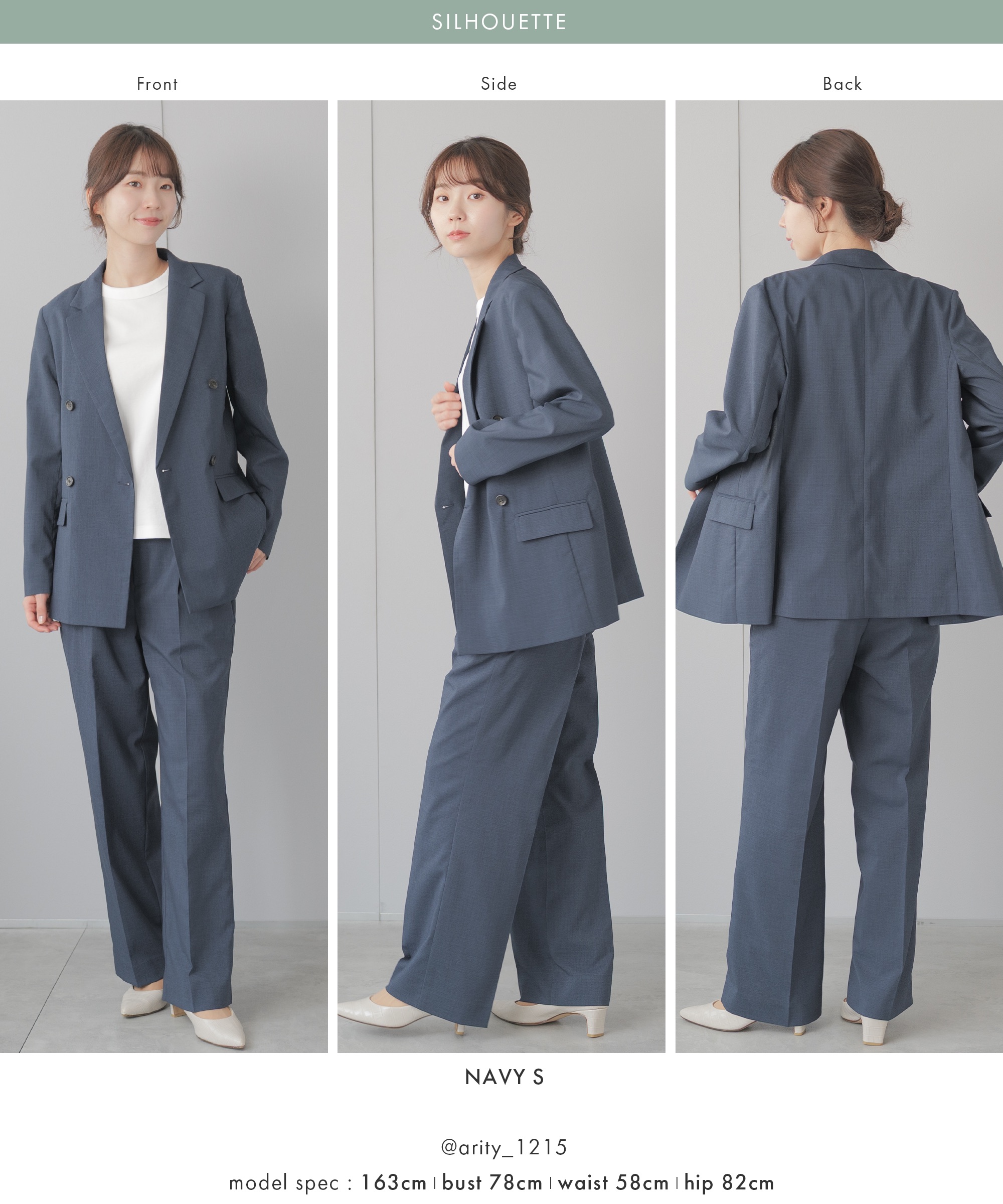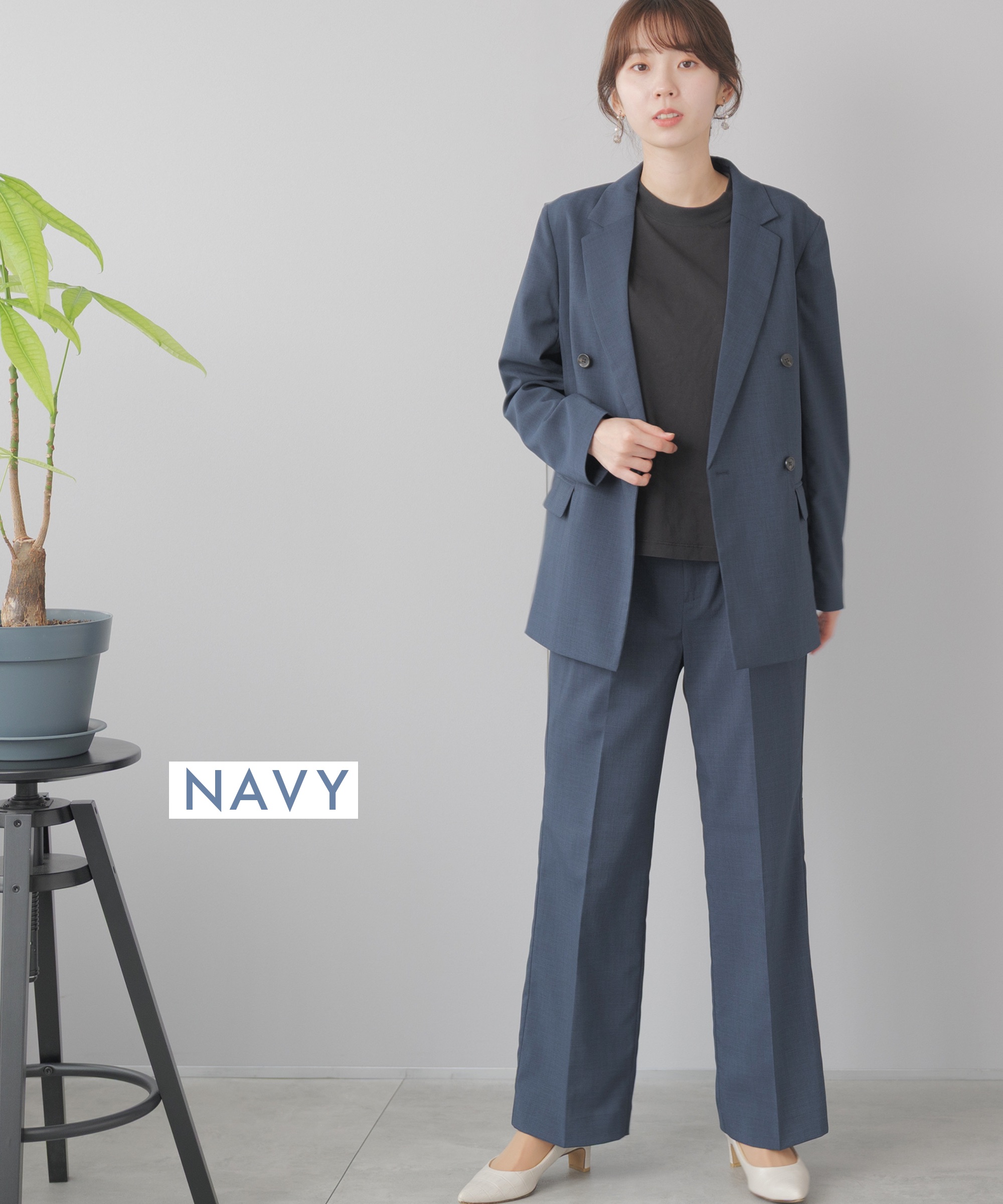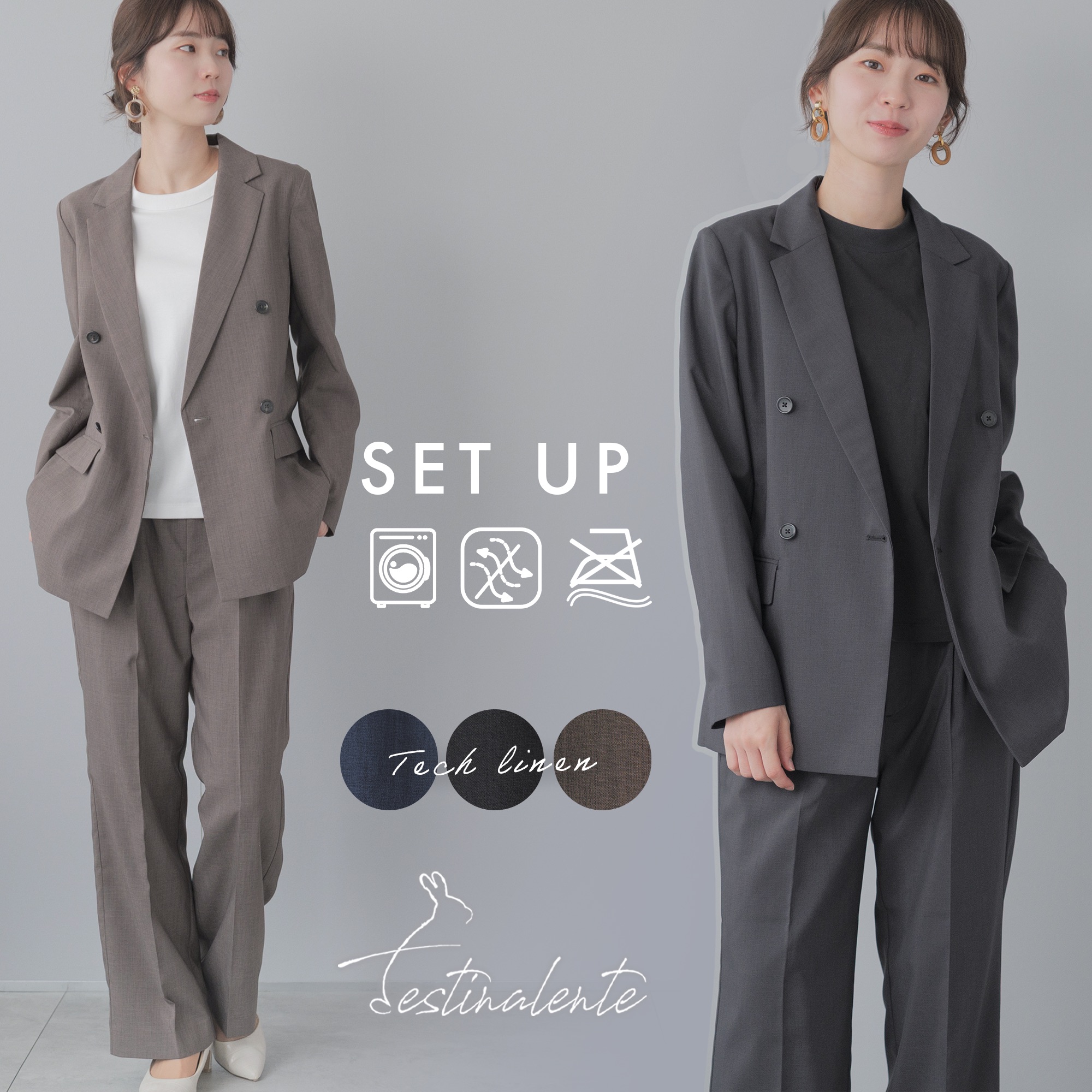 スーツ レディース セットアップ パンツスーツ ダブル 麻 リネン 調 ダブルジャケット イージーケア ワイドパンツ 洗える 30代 40代 50代 オフィスカジュアル