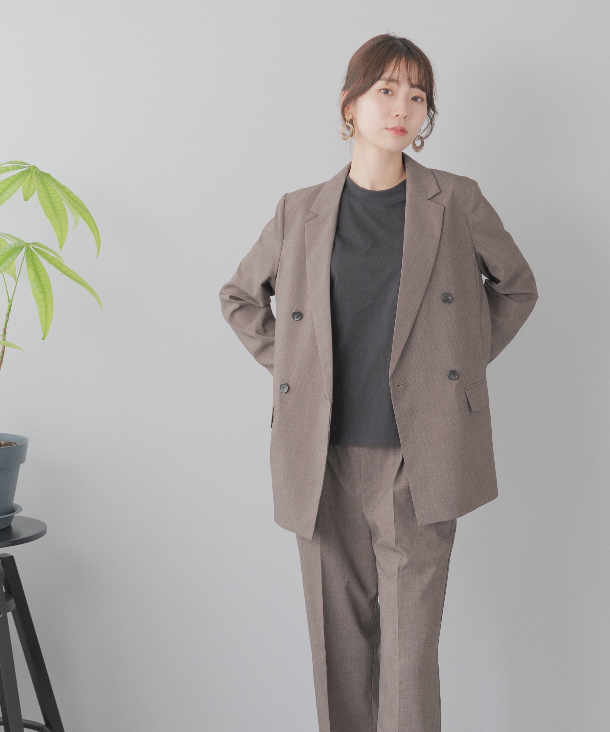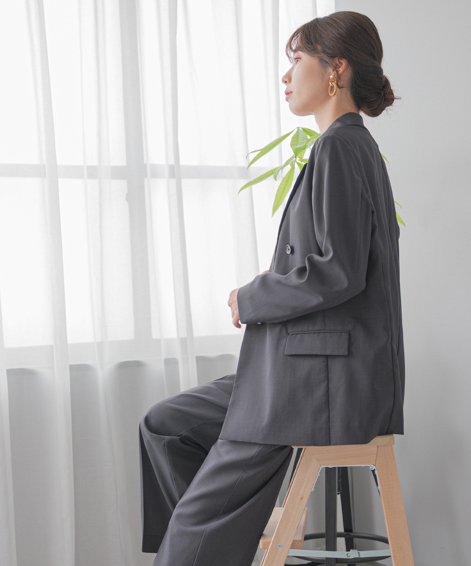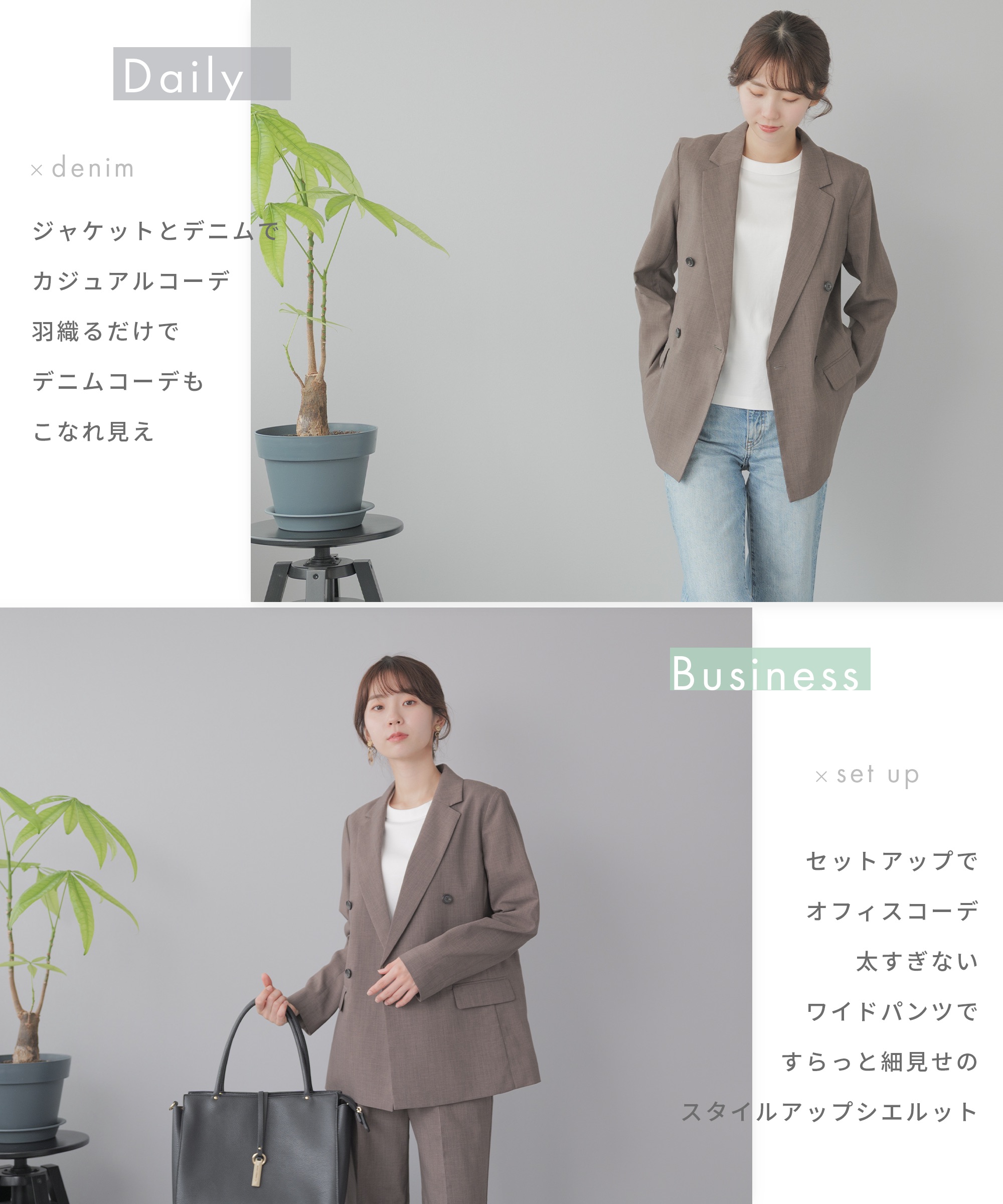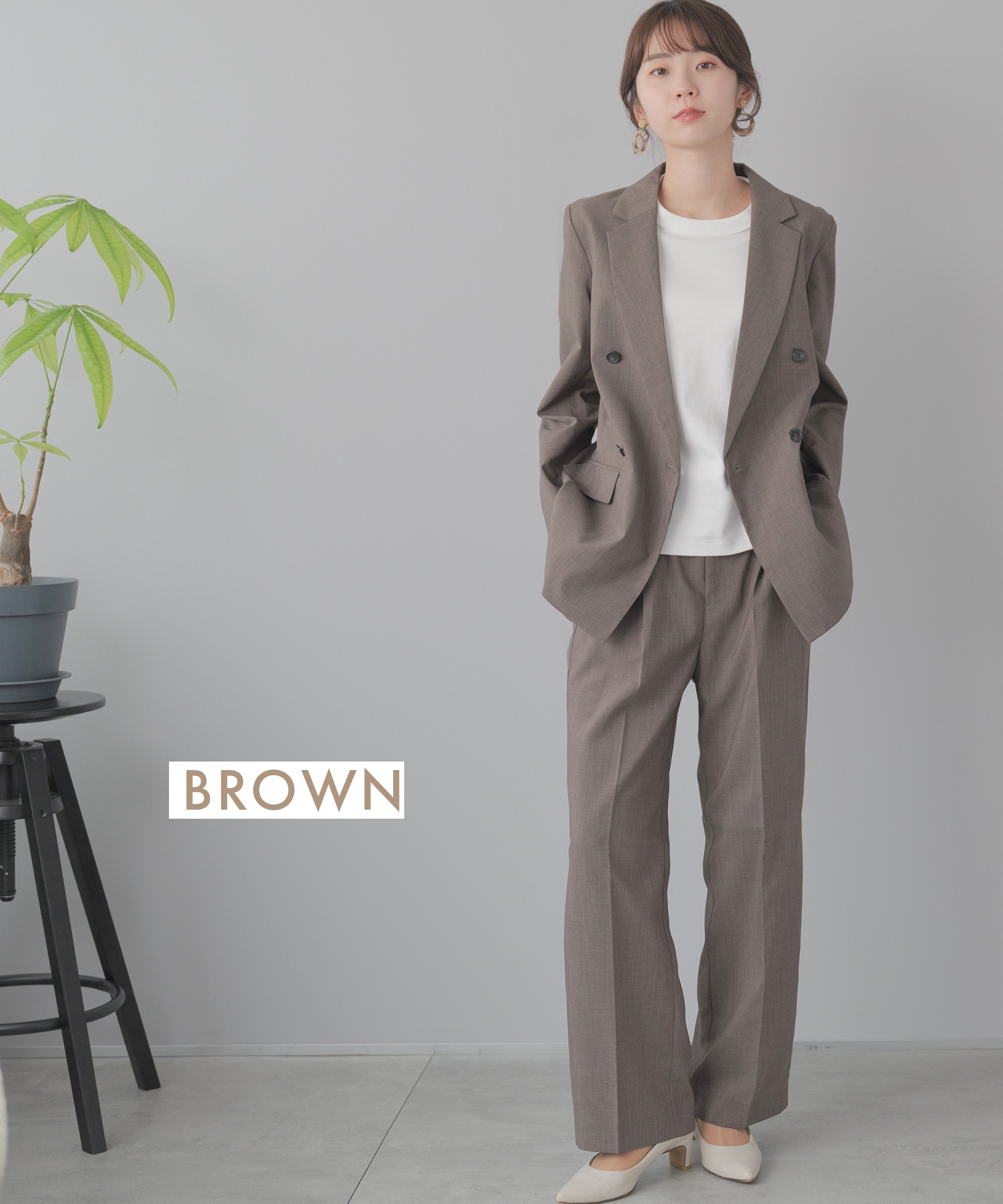 スーツ レディース セットアップ パンツスーツ ダブル 麻 リネン 調 ダブルジャケット イージーケア ワイドパンツ 洗える 30代 40代 50代 オフィスカジュアル