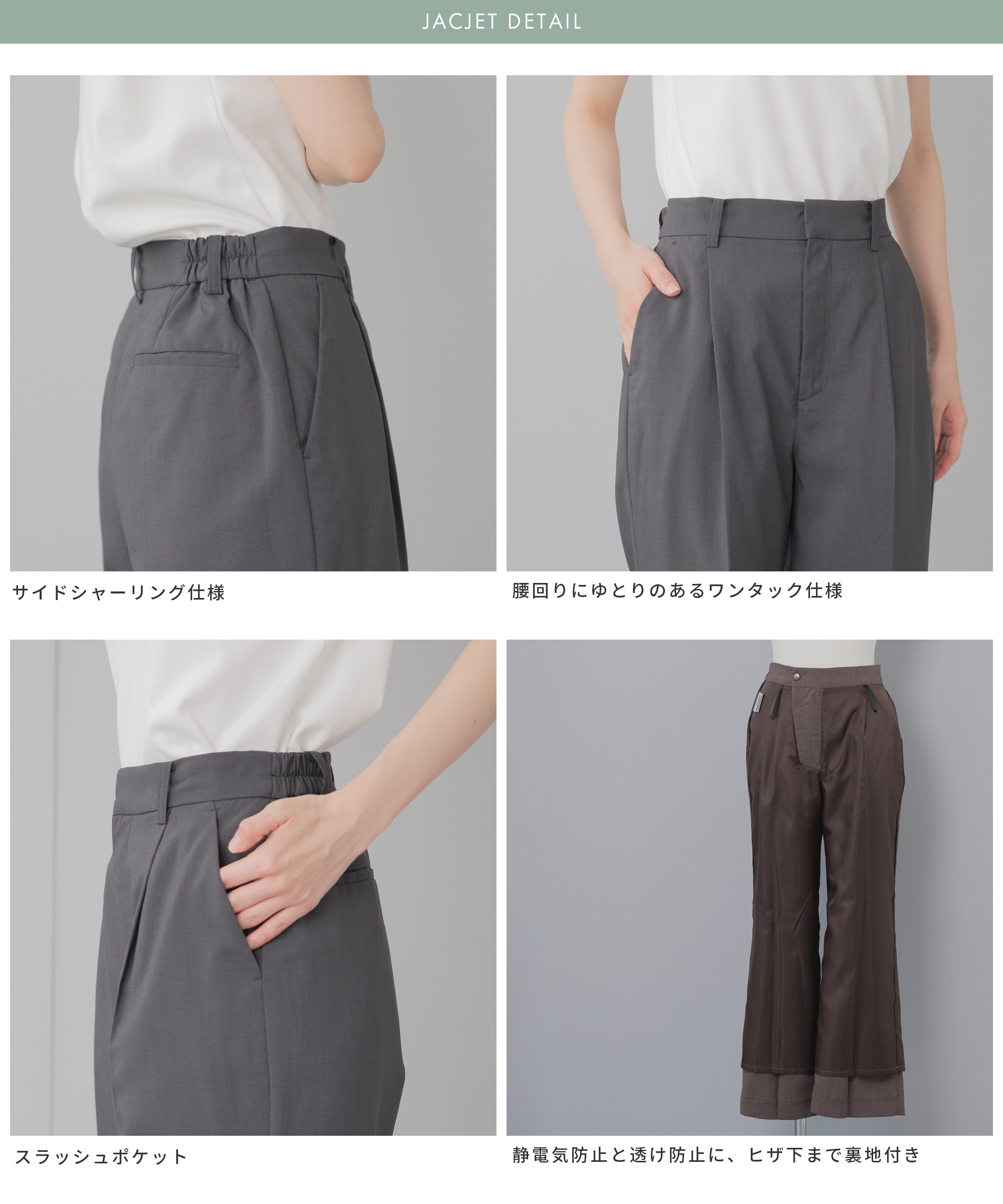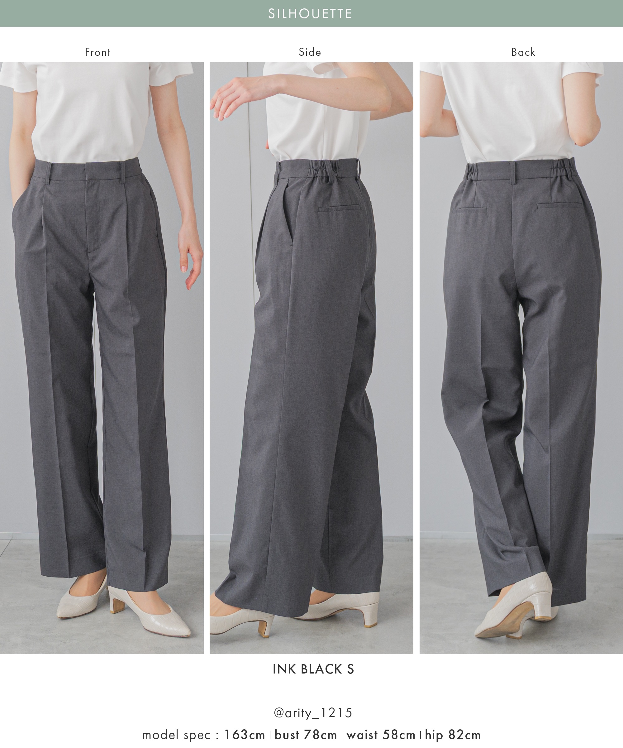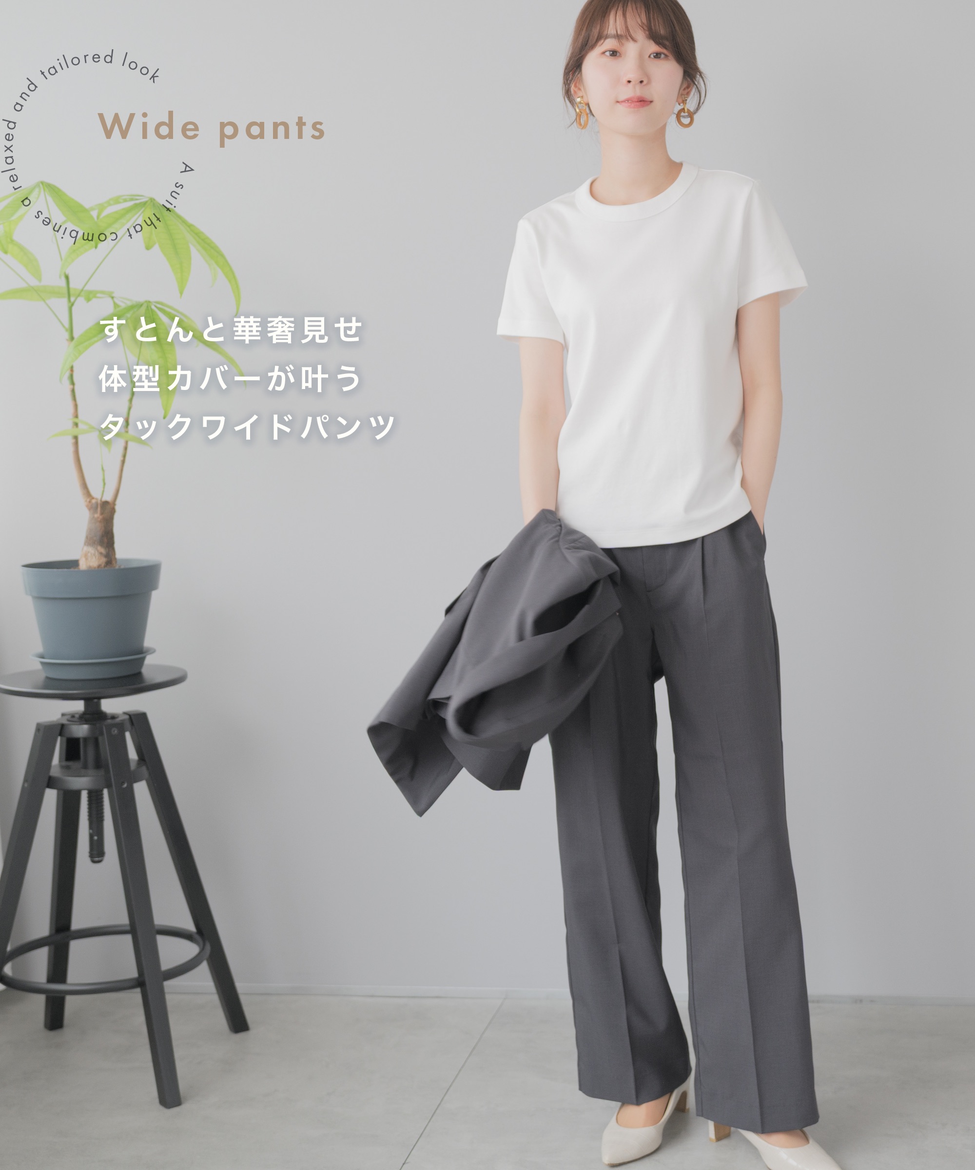 ストンと華奢見せ、体型カバーが叶うタックワイドパンツ。