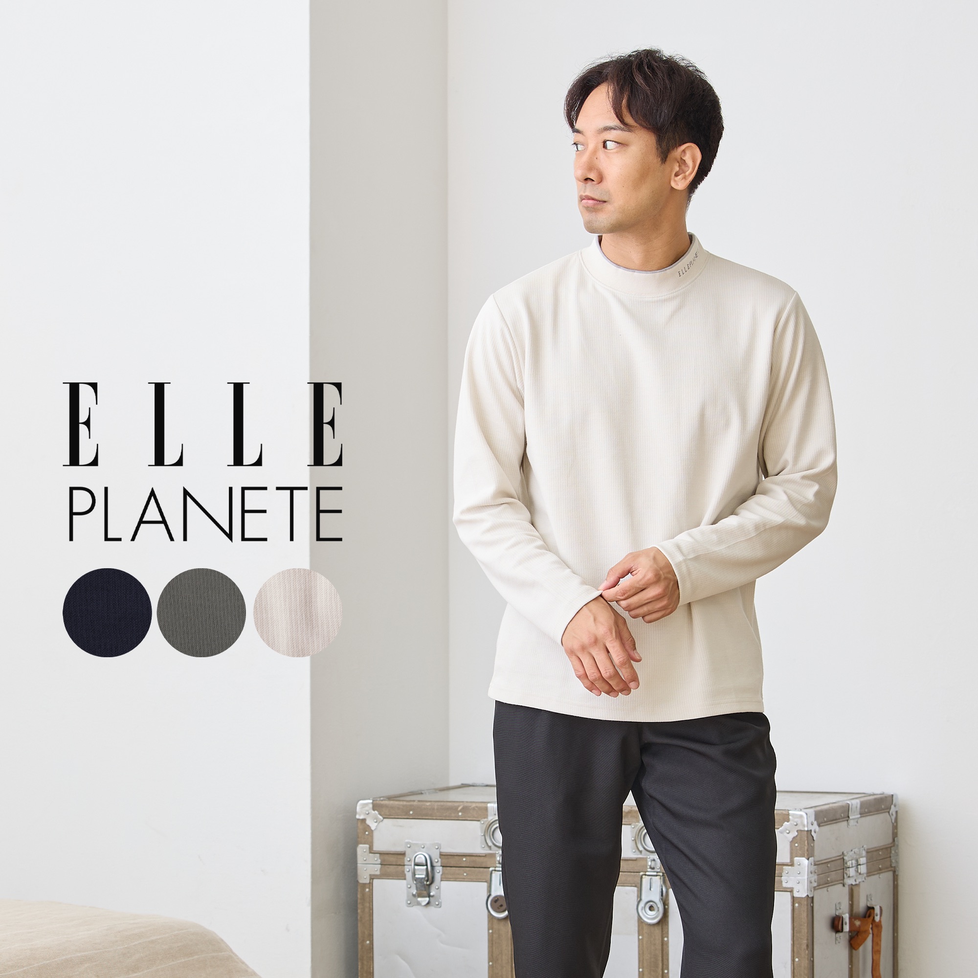 カットソー メンズ 長袖 秋 冬 春 長袖シャツ 長袖Tシャツ Tシャツ モックネック スタンド 襟付き ブランド ELLE PLANETE エルプラネット シンプル 40代 50代