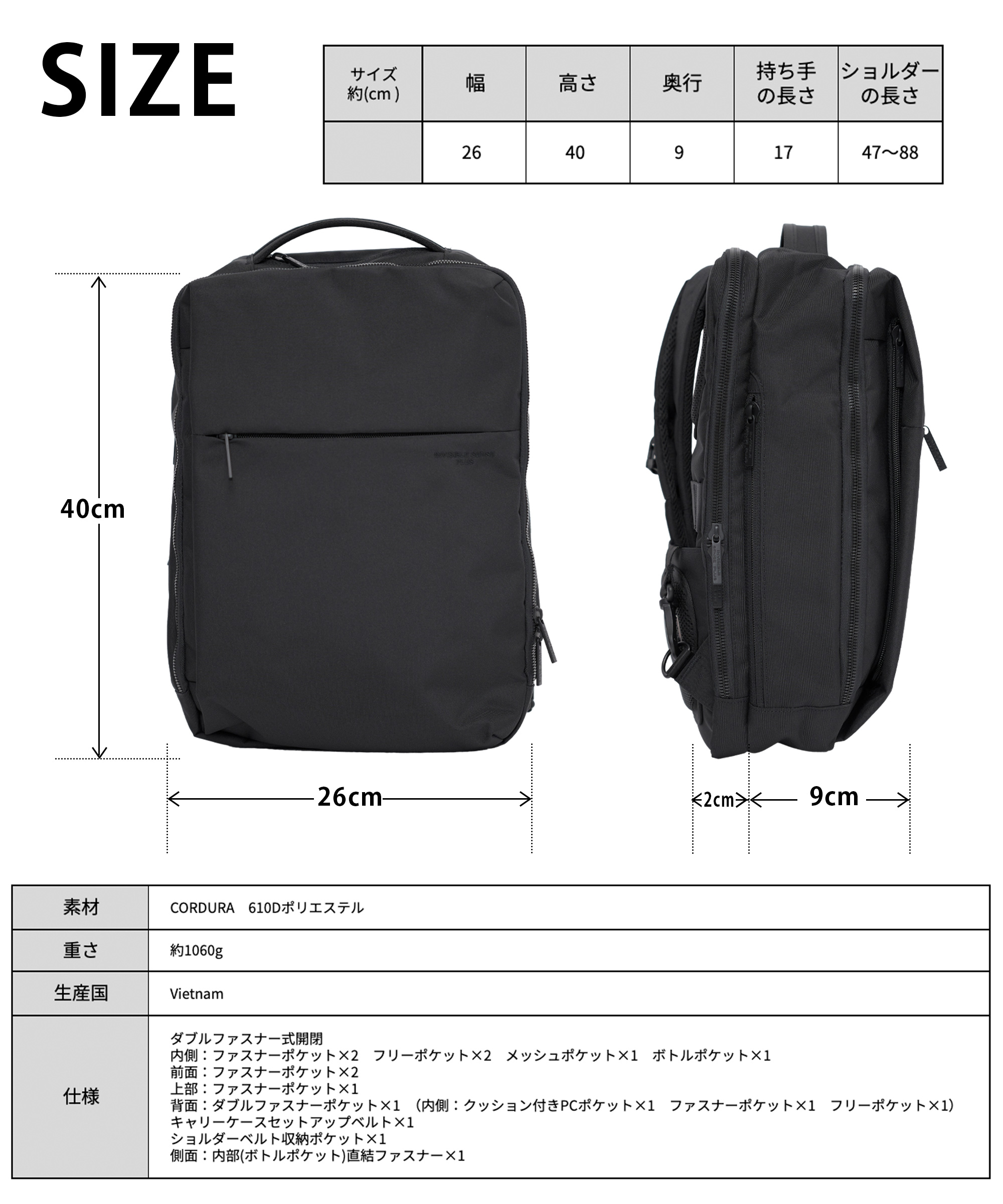 シンプルデザイン&ポケット多数&大容量!