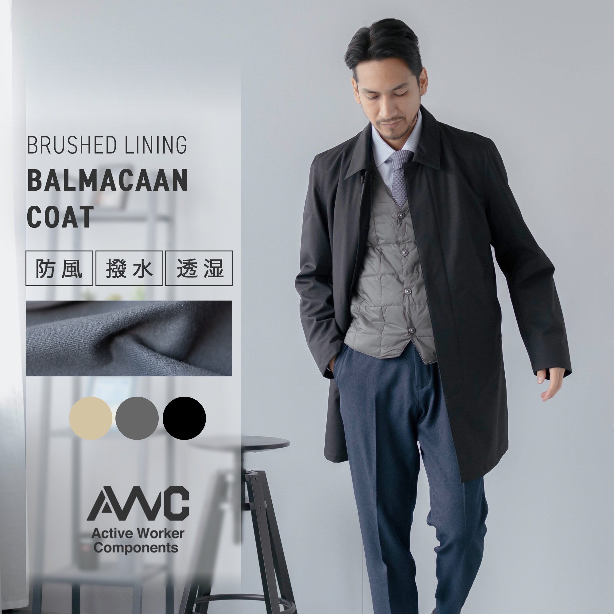 | 特徴 | brushed lining 3Layer bal collar coat 透湿 / 防風 / 撥水 3レイヤー構造の 裏フリースバルカラーコート ビジネスシーンからカジュアルアウターとしても、さっと気軽に羽織れる軽さとコンパクトさ。 通勤からデイリーまで。 幅広シーンで使いやすい嬉しいポイント。 [FUNCTION] 防風/撥水/透湿 3レイヤー構造ボンディング素材を使用した高機能性コート。 ボンディング素材を使用することで、ハリ感があり、ビジネスシーンにも使いやすいキレイめコート。 [WEIGHT] カーディガンのような軽さのコート。 カバンに入れて、寒いときはさっと羽織る秋口から春まで長く使えるバルカラーコートです。 [WARM] 裏地から袖口まで薄手のフリース素材を使用。 着膨れしない短い起毛だから、 スタイリッシュなシルエットで着こなせます。 [商品仕様] ・キレイ見えする比翼仕立 ・斜めに配置した脇ポケット ・センターベント ・M / L / LL ・ブラック / ベージュ / グレー |