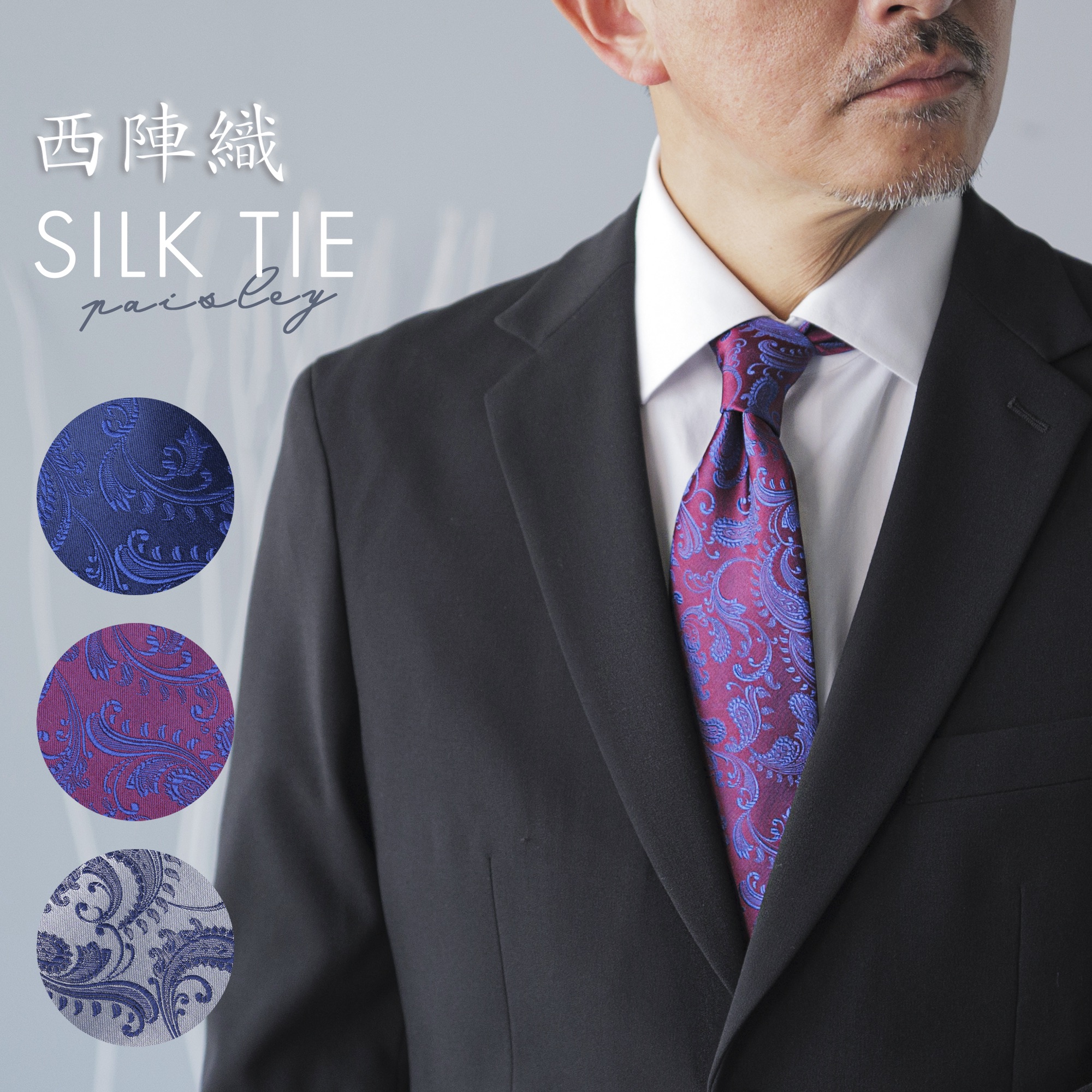 ネクタイ 日本製 シルク100% 西陣織 ペーズリー 144cm ビジネス オフィス フォーマル 結婚式 成人式 謝恩会 ギフト プレゼント 父の日 オールシーズン