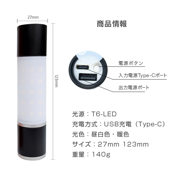 懐中電灯の頭部を伸縮させ、ビームズーム機能が可能です。