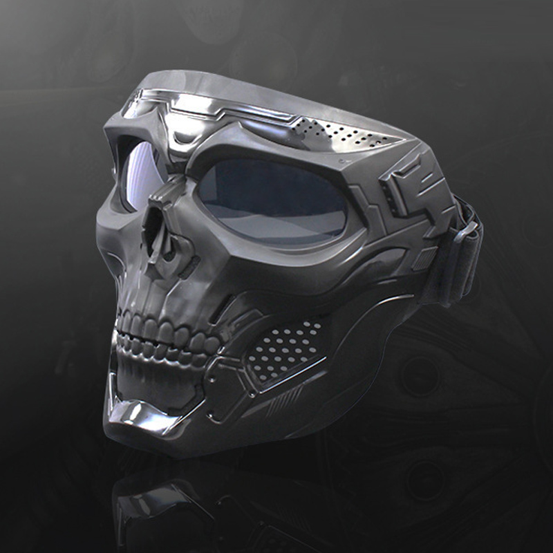 目や顔をしっかりとガードしてくれるクールなスカルデザインのフェイスガードです!