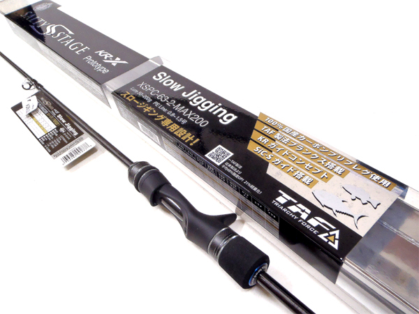 プロトタイプという名の完成品。!新しくなったSALTY STAGEは、これまでのプロトタイプの概念を一新します。試作段階において到達したクオリティこそが真の完成品でありそのプライドはいかなる装飾も必要としません。厳しいテストを経て生まれた強靭なバットパワーとしなやかなブランクスその個性と自信をぜひとも体感して下さい。【XSPC-63-2】スローピッチジャーク専用に開発された高反発スローテーパーモデル。近海で最も多用されるジグウエイト150gを一番操作しやすい設計でシリーズで一番中心となるモデル。ブランクスルー構造のTAF製法採用でカーボン含有率100%、30tだけでなく40tの構成比率も高め高弾性化した専用ブランクス。軽いジャークでもジグを横に向かせてフォール演出を自由自在に楽々操作。50cm以下という短い移動距離であっても確実にジグを操り今まで口を使わなかった魚にアプローチ可能。浅場、湾内などの近海のフィールドにベストマッチ!もちろん水深200mを超える中深海にも最適でその場合は300g前後のジグもカバー可能。この釣法には伸び率が断然低いバークレイ・ファイヤーラインが最適!【仕 様】 全長:190.5cm 自重:121g 継数:1 仕舞寸法:190.5cmルアーウェイト:50〜200g ライン:PE 0.8〜1.5号 リーダー:〜40lbグリップ:ベイトタイプ テーパー:スロー