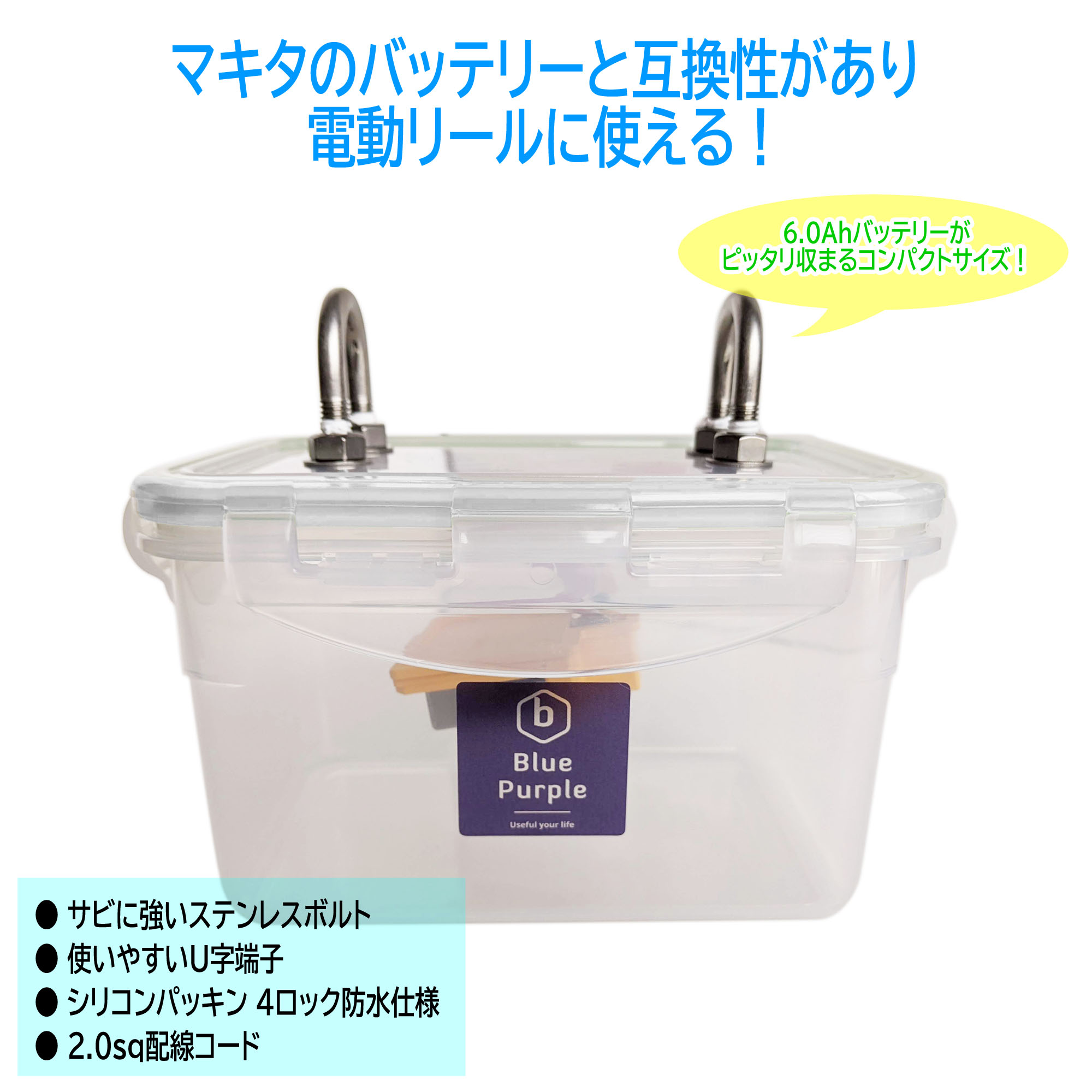 マキタのリチウムイオンバッテリーが電動リール用の電源として使用できる - このケースを使用することで、電動工具メーカーのマキタのリチウムイオンバッテリー(14.4V仕様)を、電動リール用のバッテリー(電源)として使用することができます。