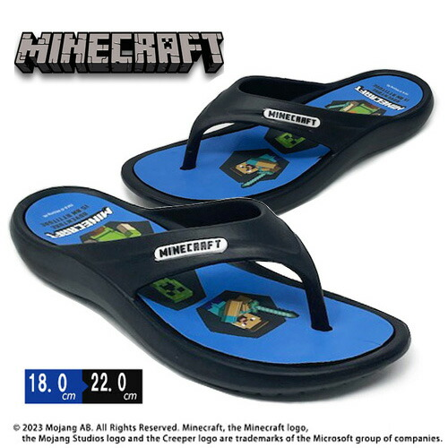 新柄 マインクラフト キッズ トング ビーチサンダル クリーパー アレックス スティーブ ブルー 1S5208H ビーチ サンダル グッズ シューズ 映画 プール 海 新作