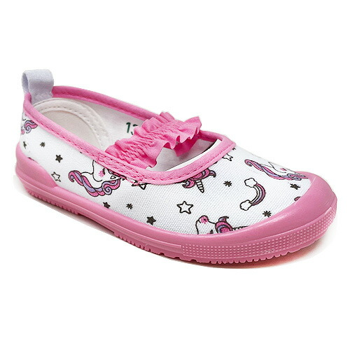 かわいいユニコーンデザインがポイントのキッズ用上履き!