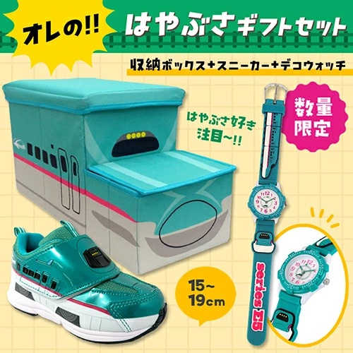収納ボックスとスニーカー、トレインデコウォッチがセットになった