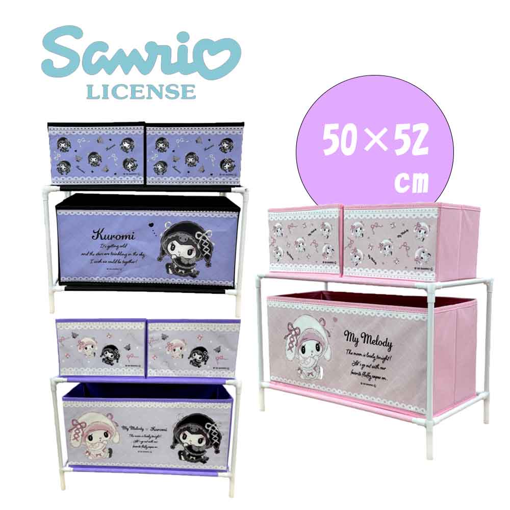 マイメロディ クロミ 月夜のメロクロ 3ボックス付き 収納ケース 約H50×W52×D27cm メロクロ 月夜のメロクロ サンリオ 収納ケース 収納ボックス 小物収納