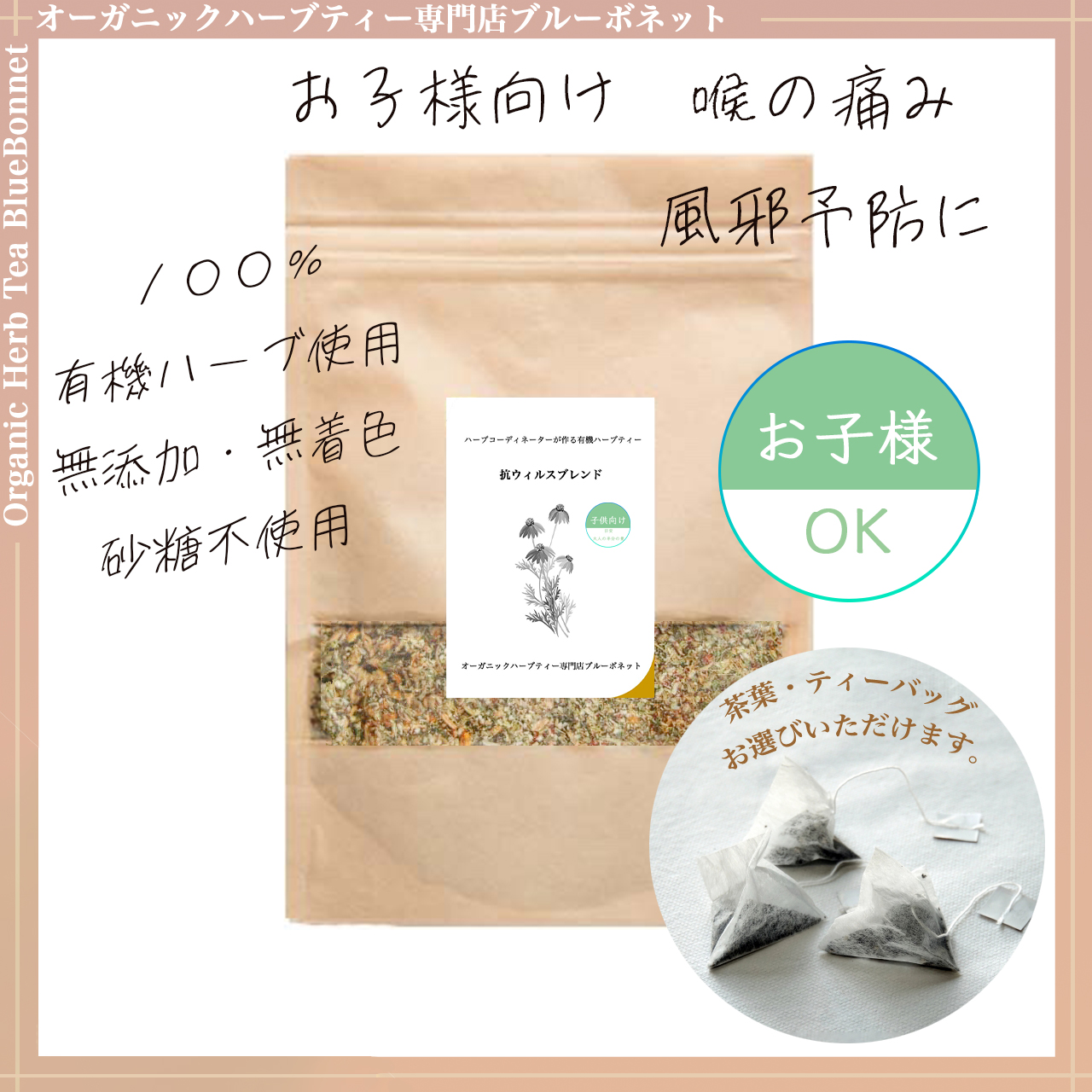 お子様も一緒に! 抗ウィルスブレンド 喉の痛み、風邪予防に 無添加 オーガニック ノンカフェイン 砂糖不使用
