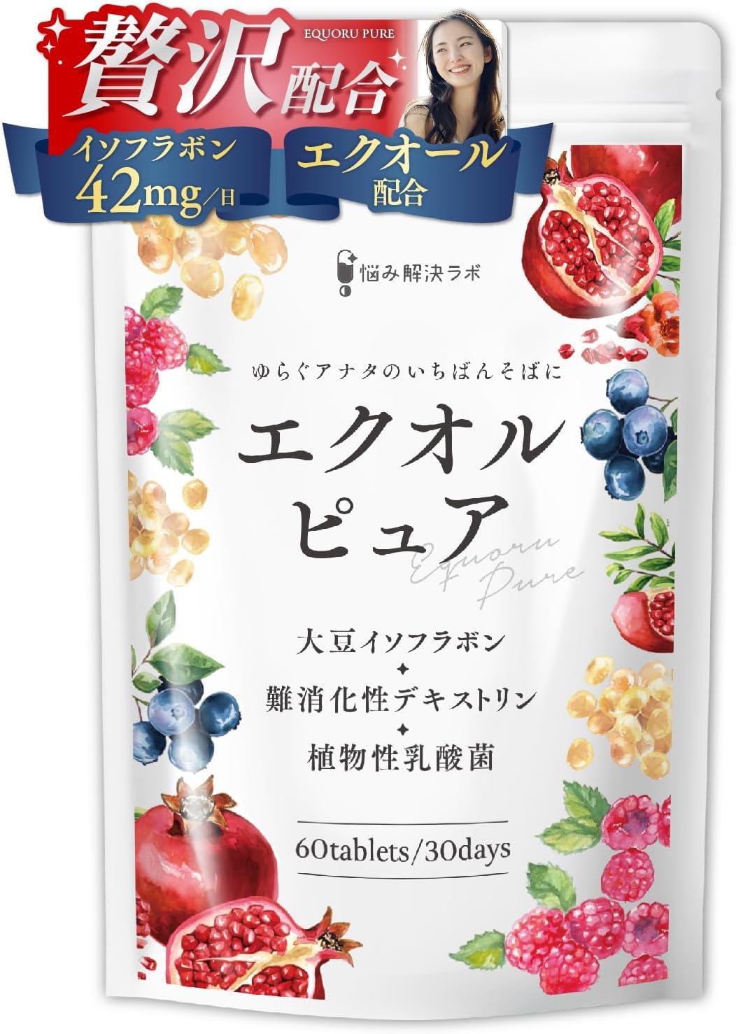 【エクオール贅沢配合】エクオルピュア イソフラボン 42mg エクオール 国内製造 30日分60粒 ビタミンB6 サプリ 大豆イソフラボン 美容 α-リポ酸
