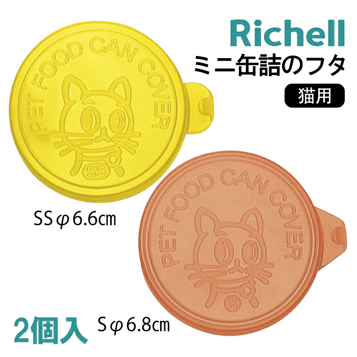 猫用缶詰のフタ リッチェルRichell 缶詰のフタ2P ペット用品 BOX ドッグ 缶フタ 食器 猫用 ミニ缶詰のフタ イエロー&オレンジ(1セット