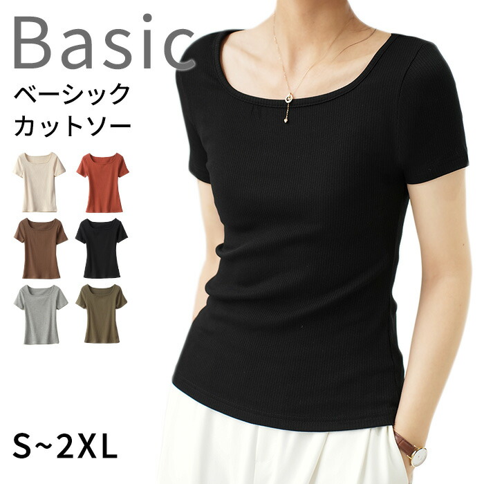 スイモク スクエアネック カットソー Tシャツ レディース トップス リブ デイリー 半袖 肌触りの良い素材 大きいサイズ きれいめ 夏 ナチュラル 水沐良品