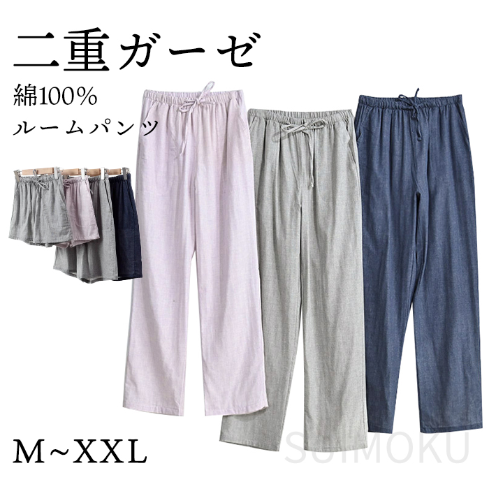年間1位 スイモク 綿100% 二重ガーゼ ルームパンツ パジャマ ルームウェア ショートパンツ メンズ レディース コットン 夏 長ズボン 短パン 大きいサイズ