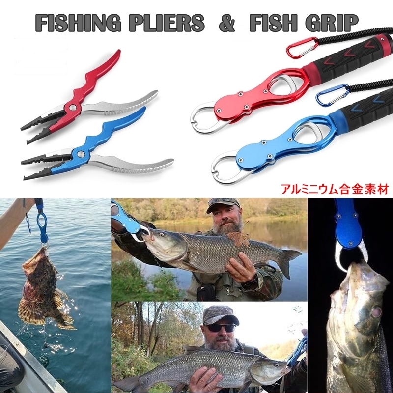 フィッシュグリップ フィッシングプライヤー グリップ プライヤー 計測機能付き 合金アルミ製 アルマイト処理 軽量 防錆 G116