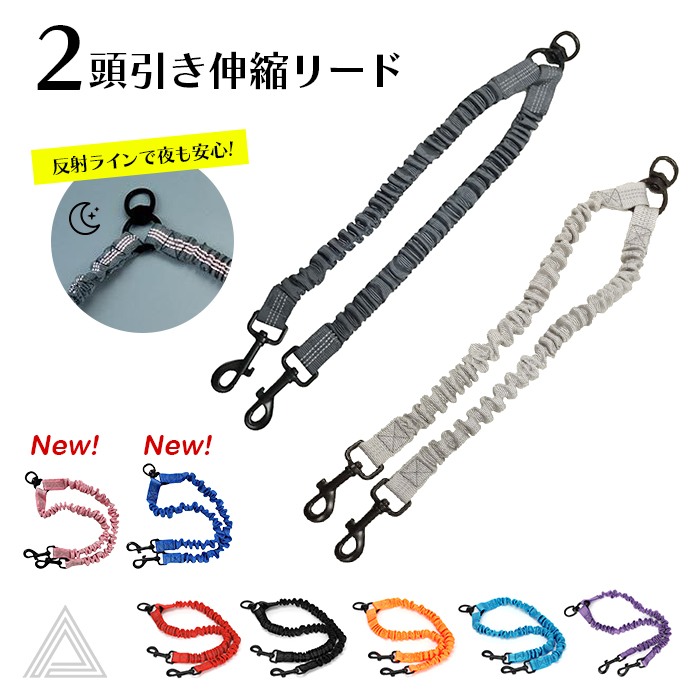 新色追加 伸縮リード 2頭引きリード ダブルリード 反射ライン 夜散歩 ラクラク お散歩用 多頭飼い ツインリード フレンチブルドッグ 1000円 中型犬 KM678G
