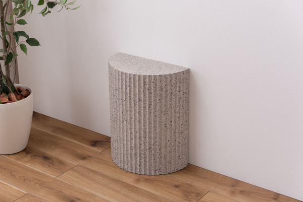 ●テラゾー柄と呼ばれる石の様な模様を施したトレンド感のあるシリーズ。●表面は凹凸のある仕様。●壁付けでも、ソファやベッドなどの家具の横付けでも。●直線の面を付けて使えるサイドテーブル。●裏面フェルトシール付き。