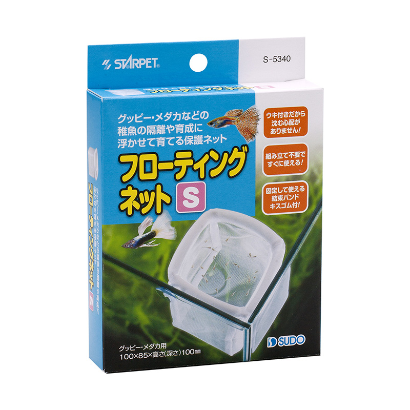 ・グッピーやメダカなどの稚魚の隔離・育成に、浮かべるタイプの保護ネット。組み立て不要ですぐに使用することができます。