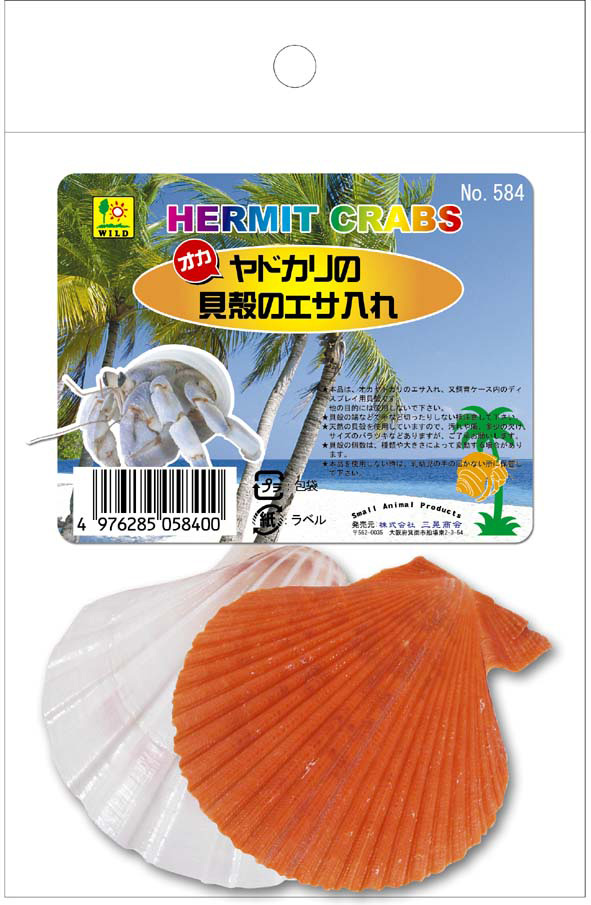 扉形の貝殻のエサ入れ、ディスプレイとしても最適です。