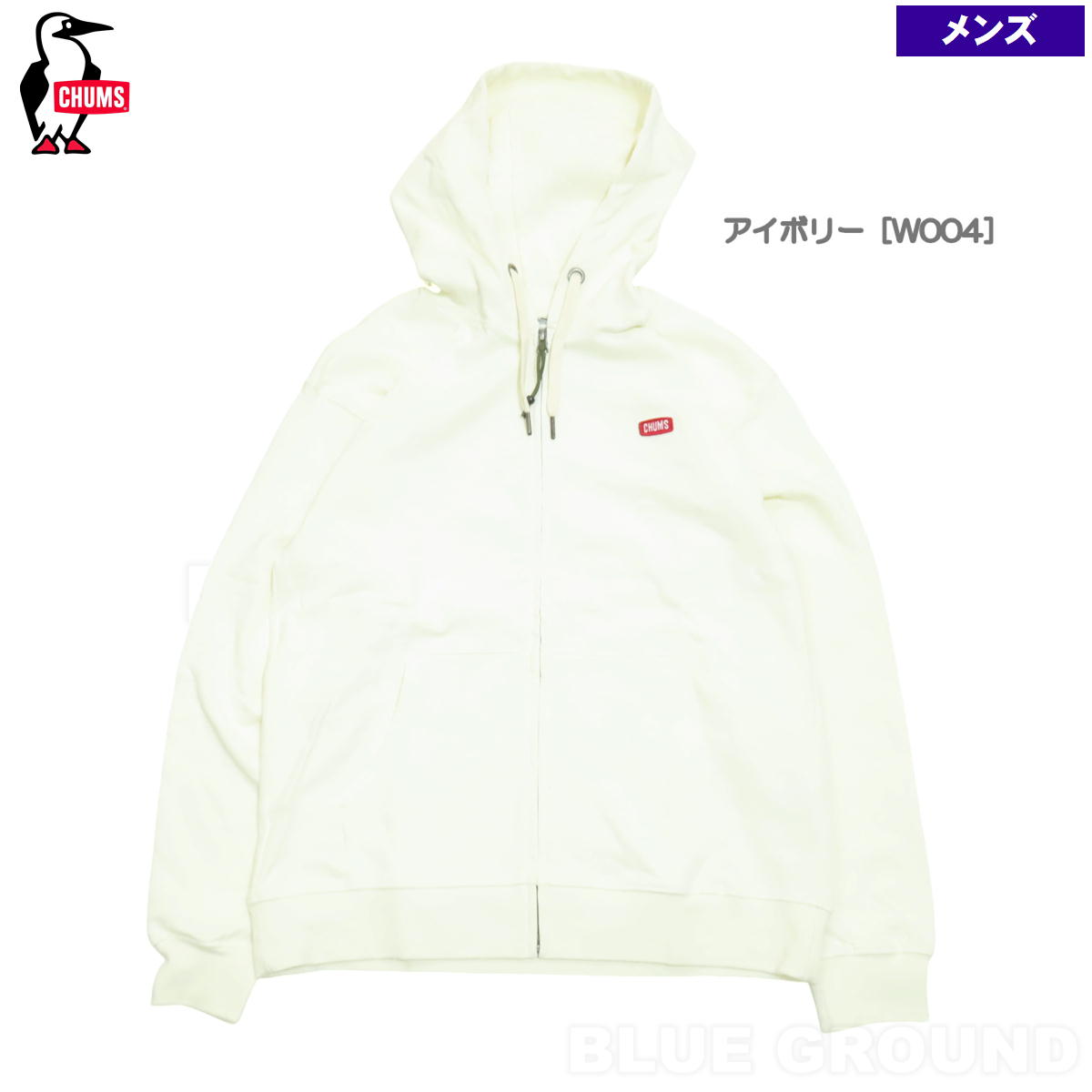 胸元にワンポイントでCHUMSロゴのミニワッペンで施したフルジップパーカー。
