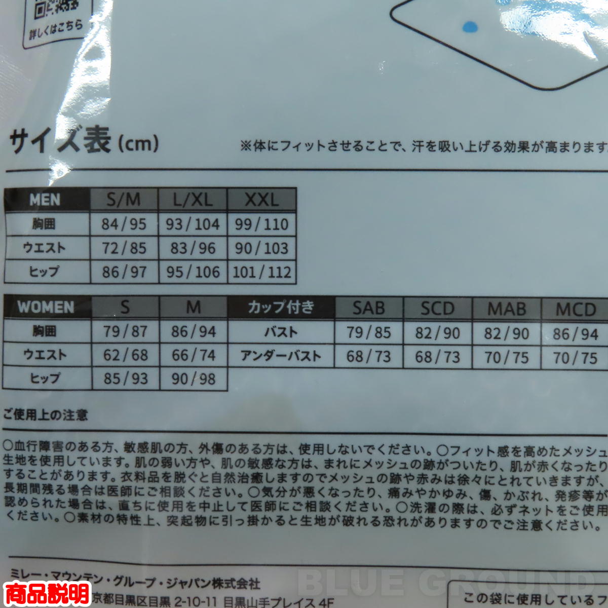 ※サイズチャートはミレー公式からの算出で目安となります